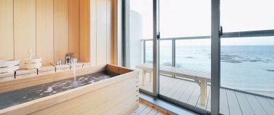 特集「魅力度ランキング6年連続最下位 茨城県の魅力大発見旅 Part2」の中で、当館人気の半露天風呂付き客室プレミアムルームのジャパニーズと、ご夕食のバイキングをご紹介いただきました。