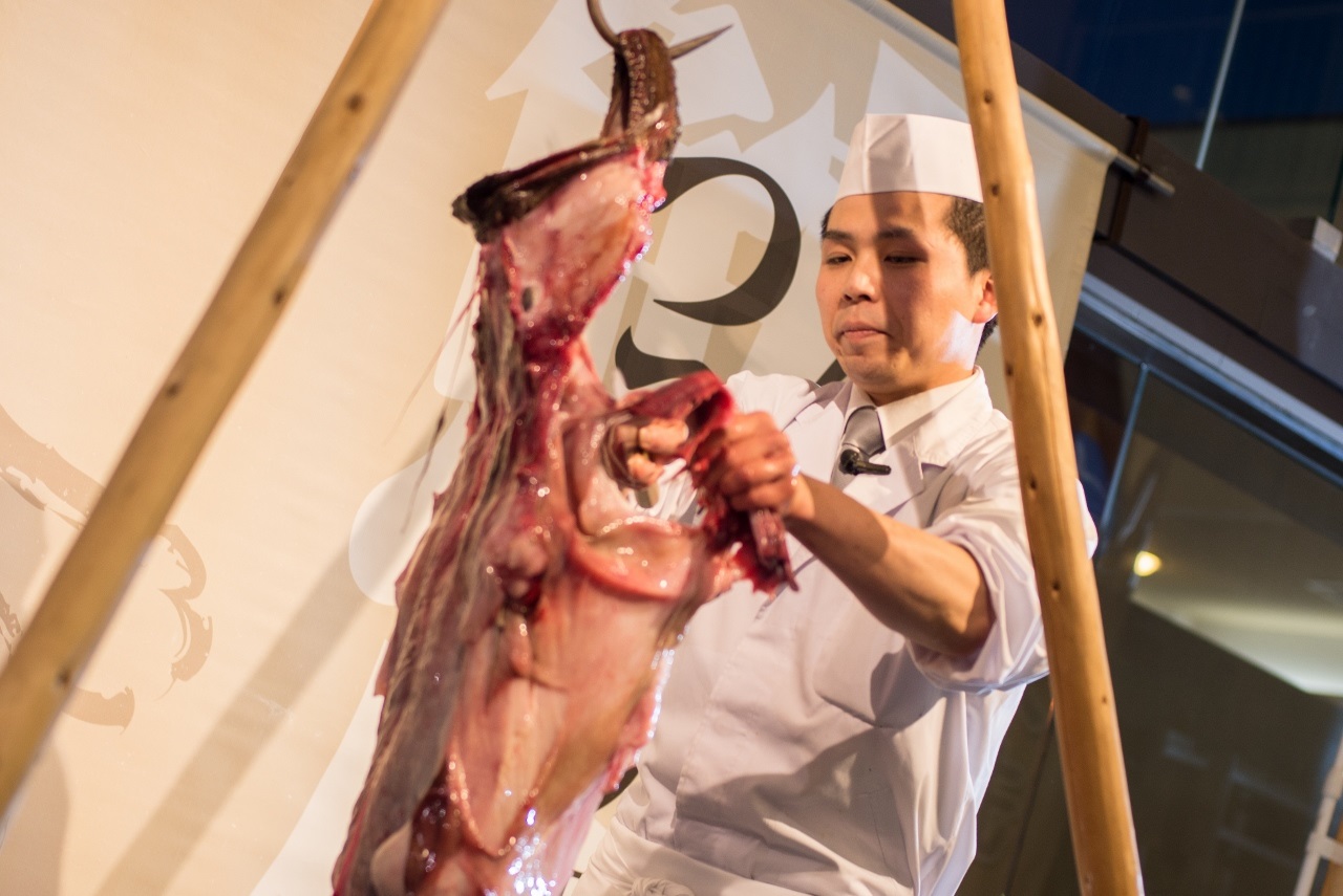 【あんこう吊るし切りショー】