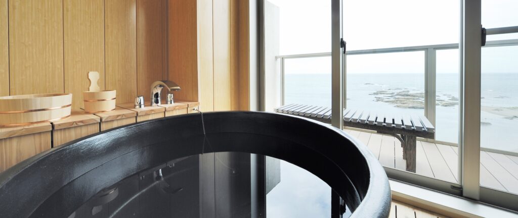 オーシャンビューバスには遠赤外線効果が見込める「常滑焼」の丸型浴槽を採用し、夏は窓を開ければ涼しい潮風を浴びながら開放的なバスタイム、そして冬は体の芯から温まる入浴がお楽しみいただけます。