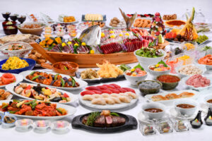 ステーキやお寿司が食べ放題!お好きなネタで作る自分だけの海鮮丼や出来立ての料理をお召し上がり頂けるライブキッチンでお子様も大喜び!大洗ホテルの海山バイキングをお楽しみ下さい。