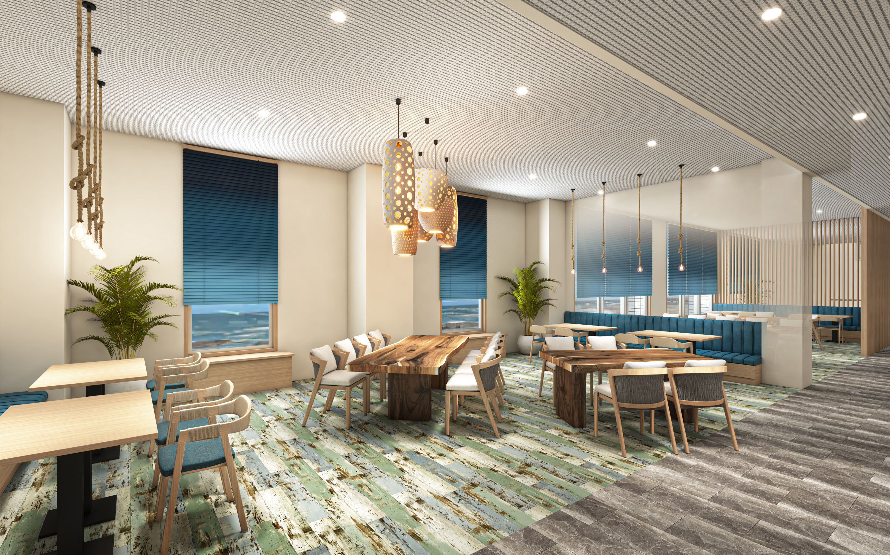 また、バンケットルームでは「The Ocean Park Dinner」と銘打って、海を臨む特別な食の体験をご提供します。「旅する食のオーシャンパーク」というコンセプトのもと、大洗の自然と食材を活かしたフェスティバル・マーケットプレイスをお楽しみいただけます。これに伴い、人気のディナーバイキングも一部メニューをリニューアルし、地元の新鮮な素材を使用した料理をご提供いたします。