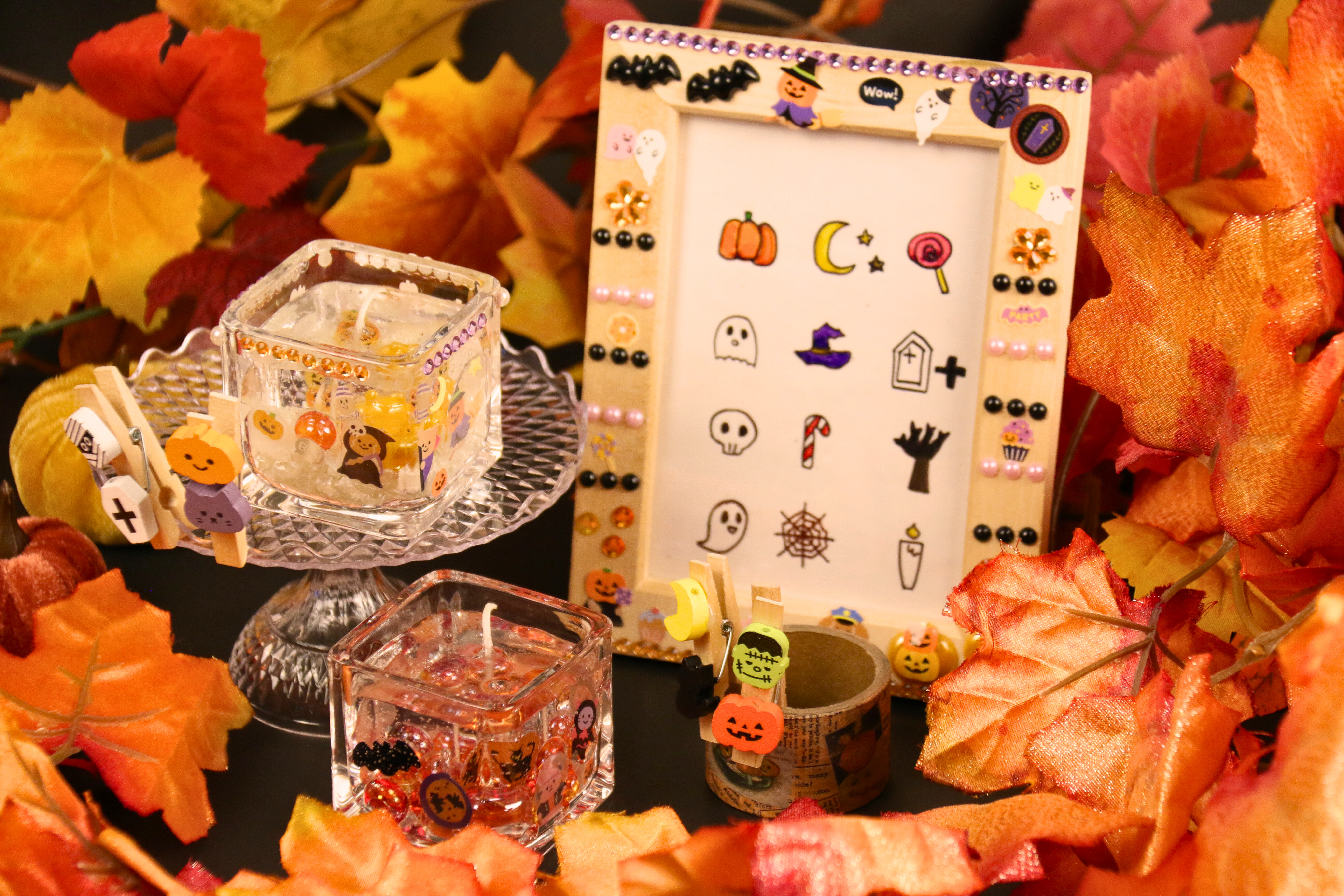 クラフトコーナーでは、“ハロウィン”ならではの作品つくりをお楽しみいただけます。おばけやかぼちゃのハロウィンパーツを期間限定でご用意。ジェルキャンドルやフォトフレーム、オリジナルクリップの作成をお楽しみください。